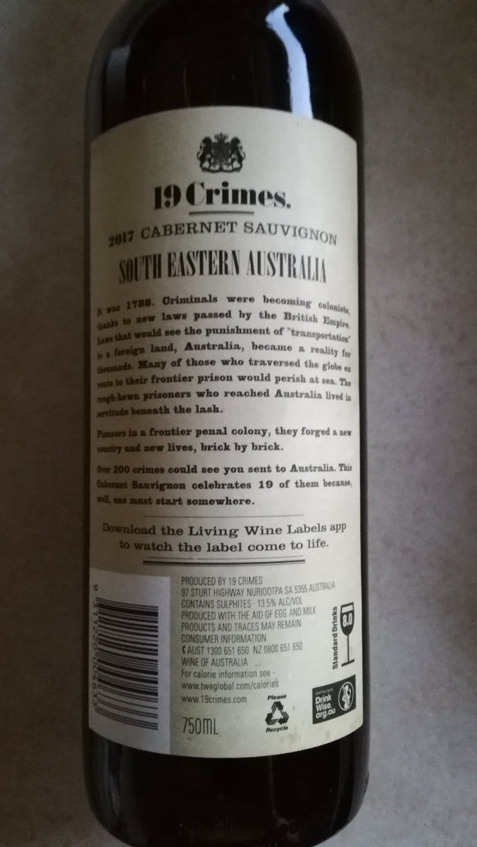 Augmented Reality is an exciting technology giving us the unique opportunity to let these historic criminals-turned-colonists tell their own stories in. 19 Crimes Cabernet Sauvignon 1300 USD. You can download the 19 Crimes app via the Apple Store a.